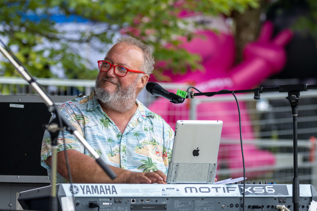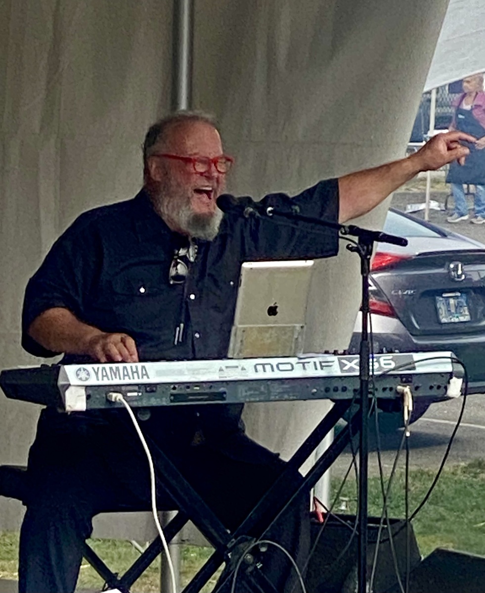 The product of an opera soloist/choral director mother and a wicked piano player father, Brian's influences span Mozart to Motown, ska to Santana. Active on the Vancouver Scene since 1980, Brian has played keys and more with, The Invaders, Mae Moore, Christine Best and “The Dynamics” to name a but a few bands. Known as a very energetic performer, nothing makes him happier than a packed danced floor that sings along with the band.